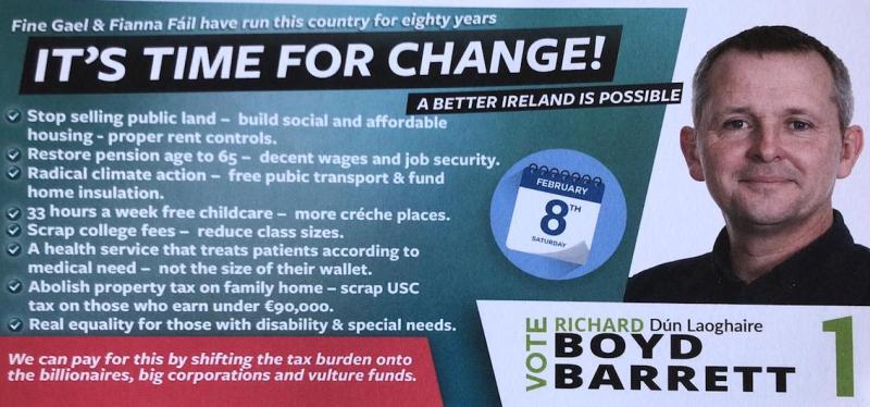 A Leaflet from Richard Boyd Barrett who is running for People Before Profit in Dún Laoghaire in the 2020 General Election.