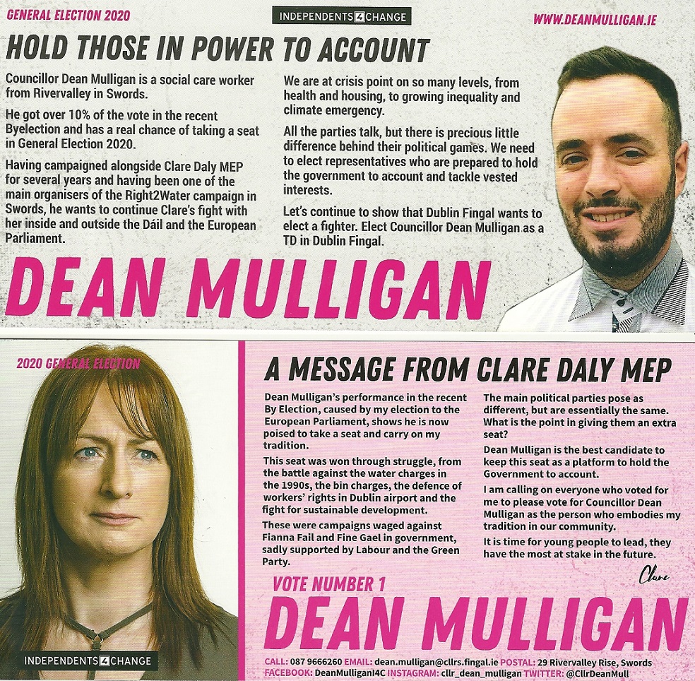 Leaflet from Dean Mulligan – Independents4Change -Dublin Fingal #GE2020 » GE20DeanMulligan