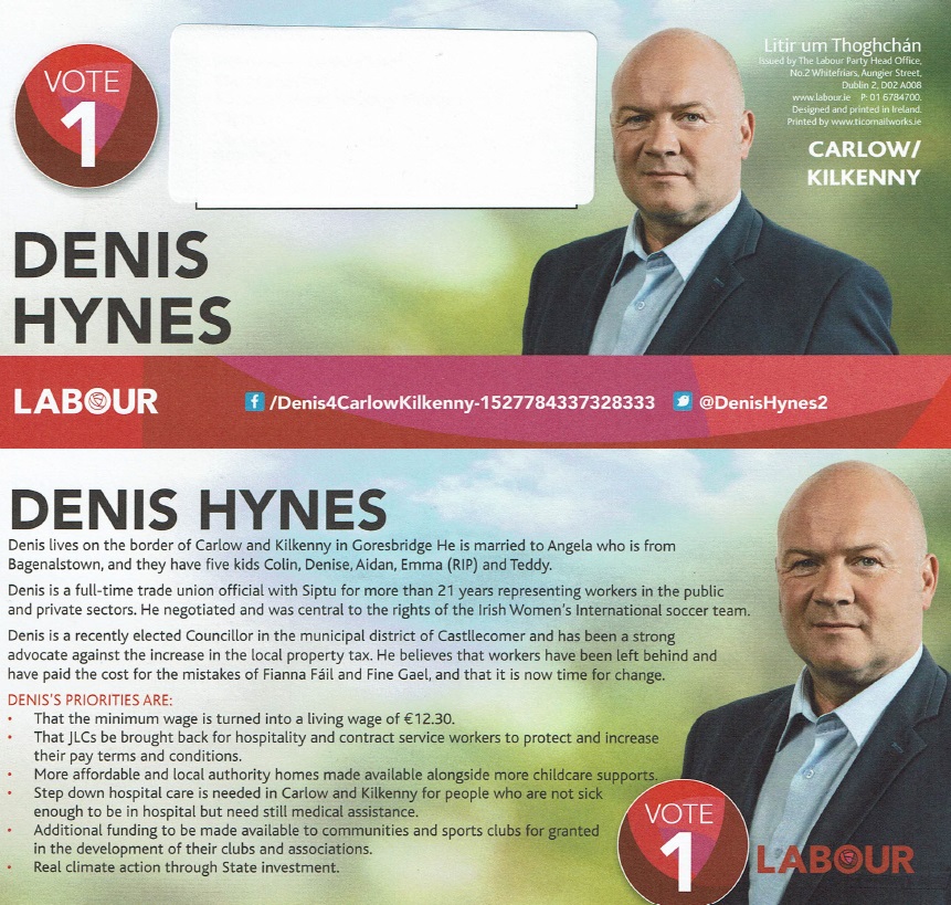 Leaflet from Denis Hynes -Labour -Carlow Kilkenny #GE2020 » DenisHynes