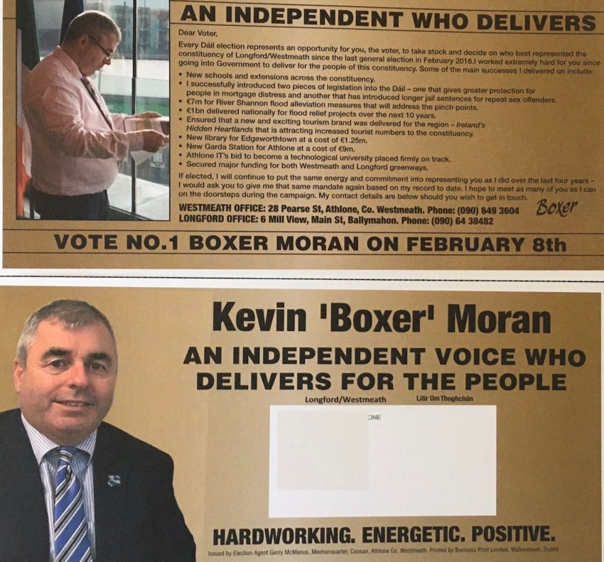 A Leaflet from Kevin ‘Boxer’ Moran who is running as an Independent in Longford Westmeath.