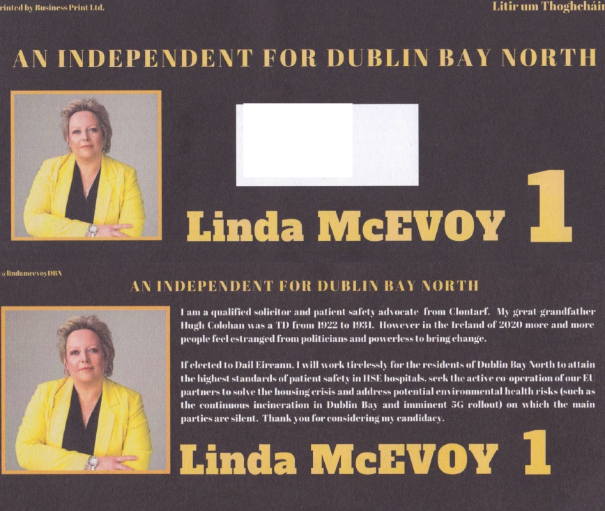 A Leaflet from Linda McEvoy running as an Independent in Dublin Bay North.