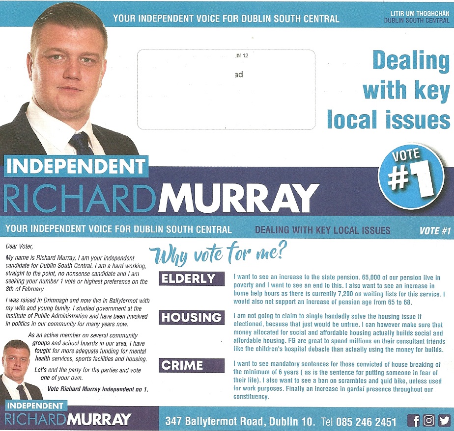 Leaflet from Richard Murray -Independent – Dublin South Central #GE2020 » richardmurray