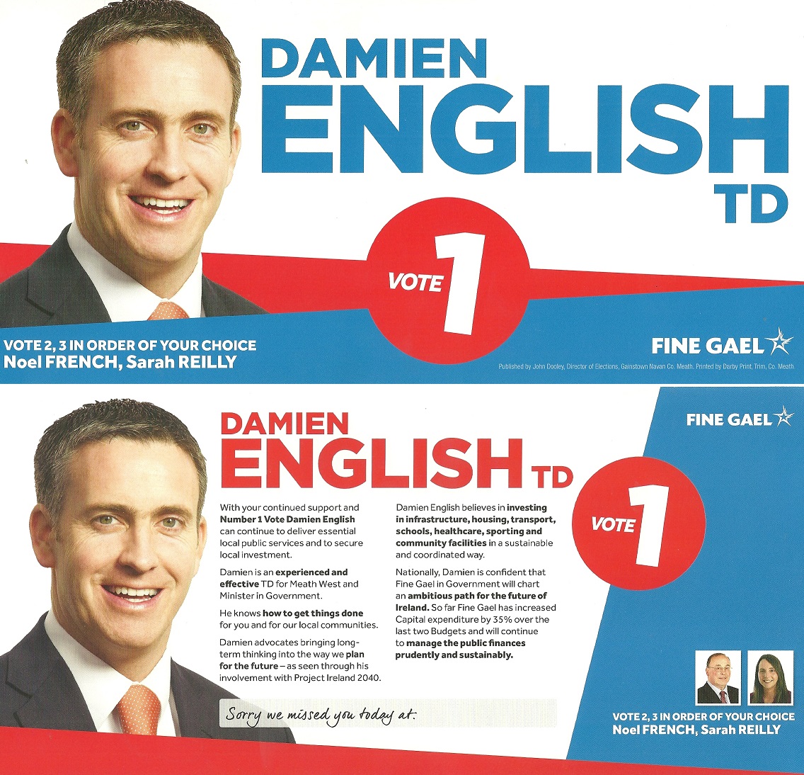 A Leaflet from Damien English of Fine Gael running in Meath West.