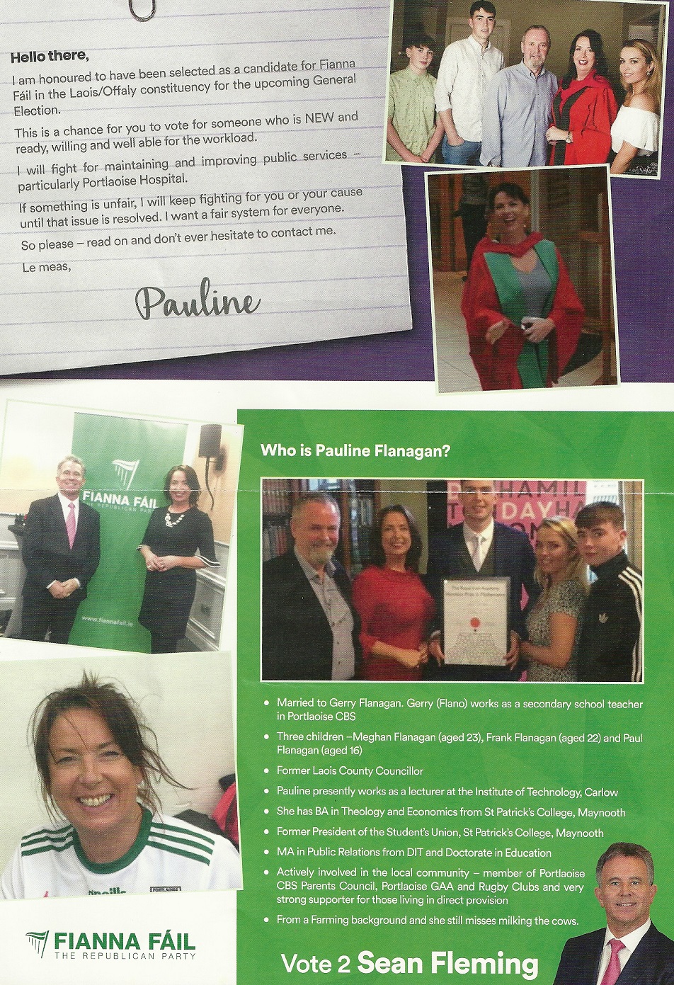 Leaflet from Pauline Flanagan -Fianna Fáil -Laois Offaly #GE2020 » PaulineFlanagan2