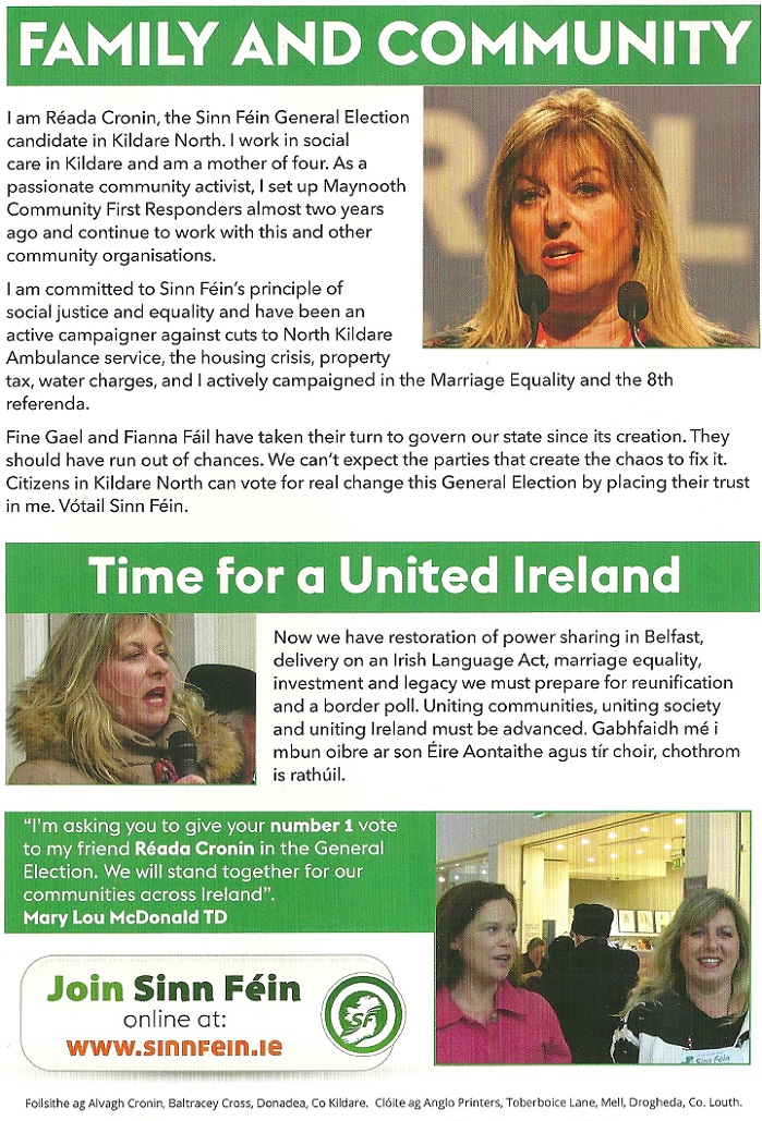 Leaflet from Réada Cronin – Sinn Féin – Kildare North #GE2020 » ReadaCroninGE20c