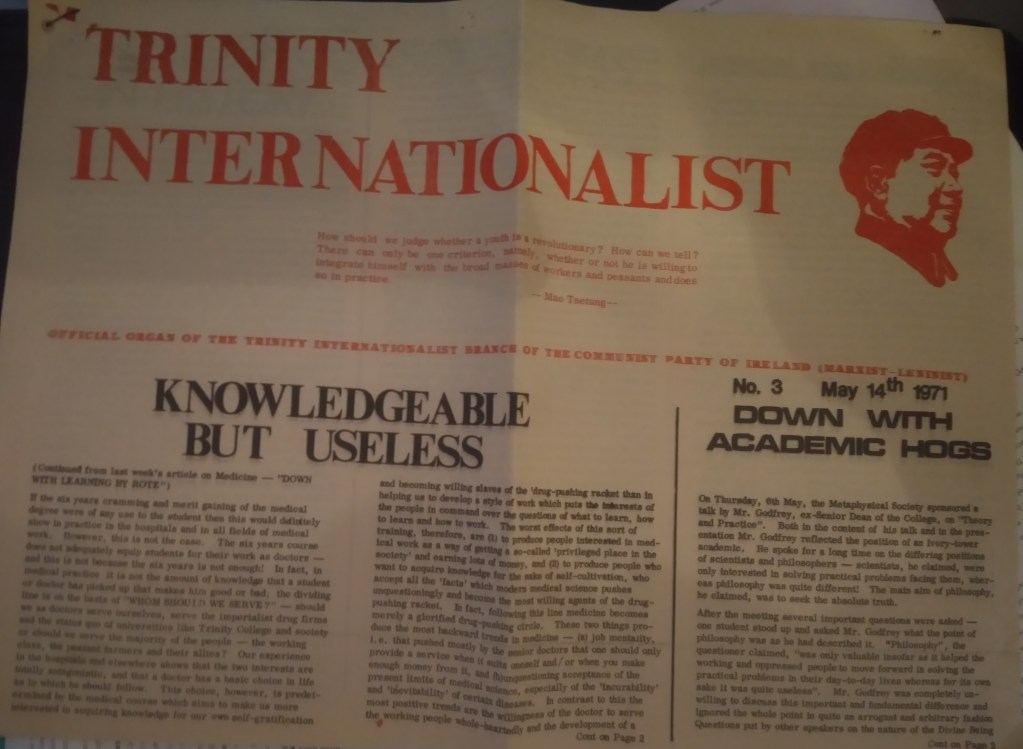 A May 14th 1971 edition of Trinity Internationalist – The Official Organ Of The Trinity Internationalist Branch of The Communist Party of Ireland(Marxist-Leninist).