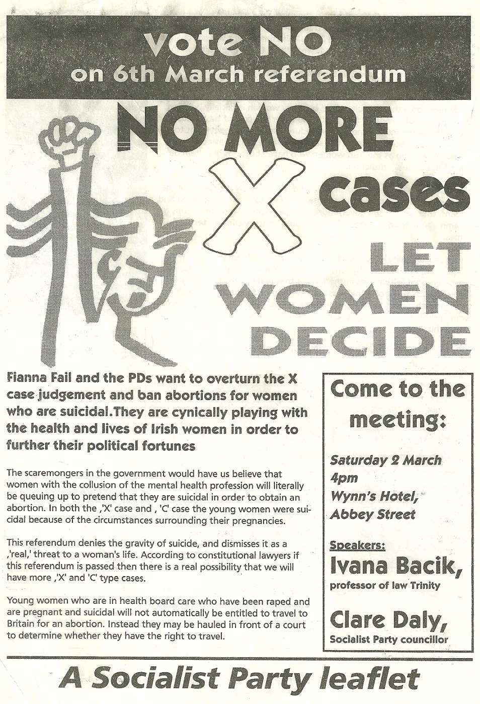 “No More X Cases -Let Women Decide” -Socialist Party Vote No leaflet -2002 Abortion Referendum » 2002AbortionSP1