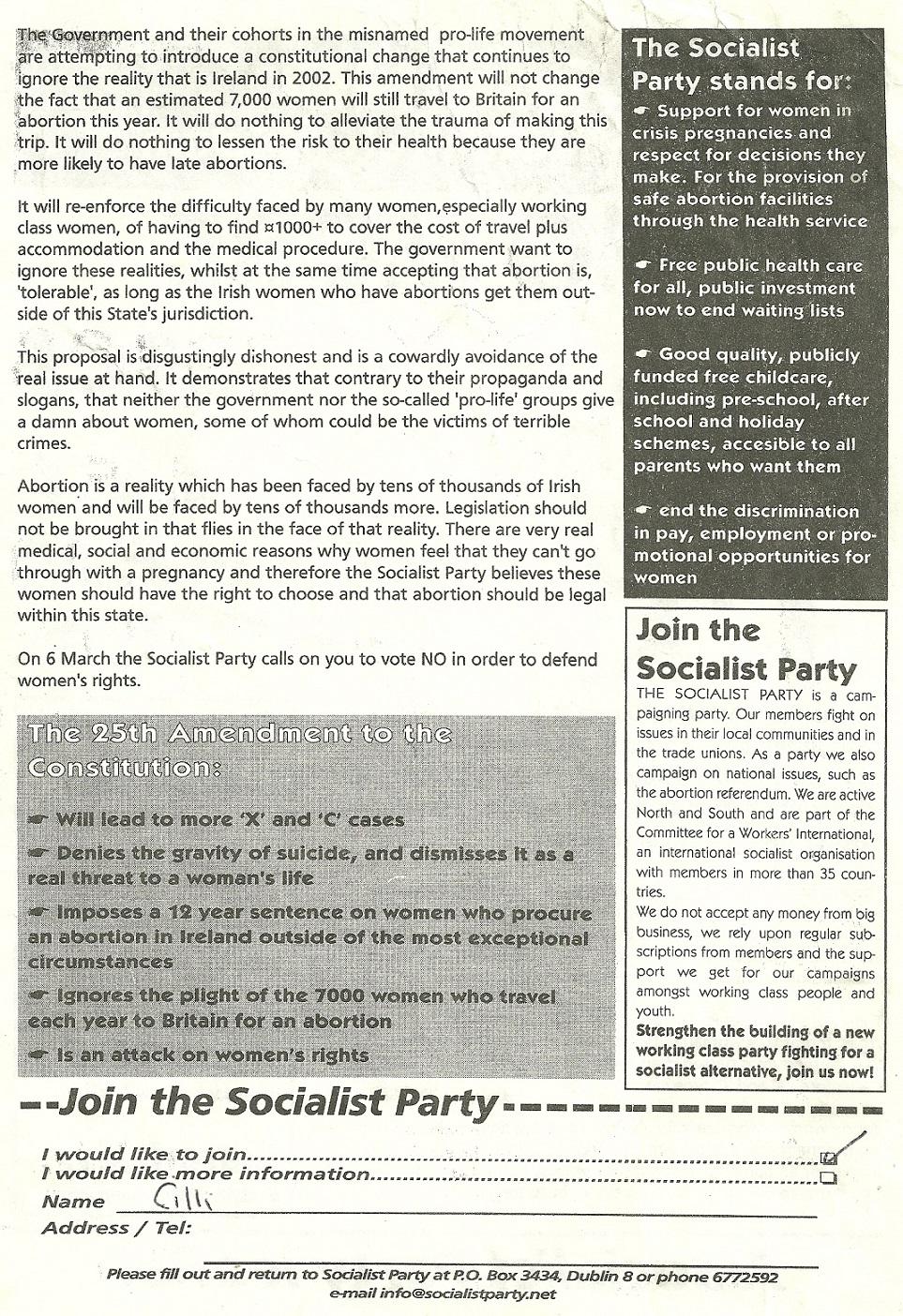 “No More X Cases -Let Women Decide” -Socialist Party Vote No leaflet -2002 Abortion Referendum » 2002AbortionSP2