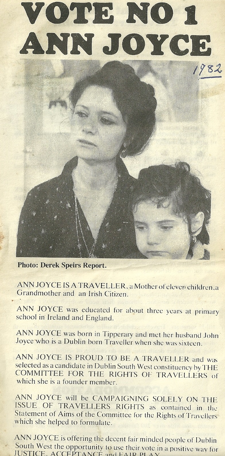 Leaflet from Ann Joyce -Independent -Dublin South West – November 1982 General Election » AnnJoyce1