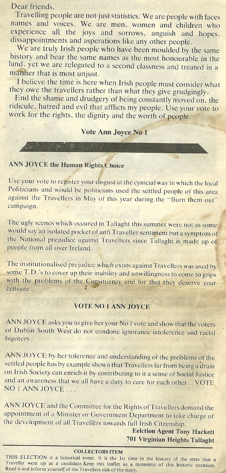 Leaflet from Ann Joyce -Independent -Dublin South West – November 1982 General Election » AnnJoyce2