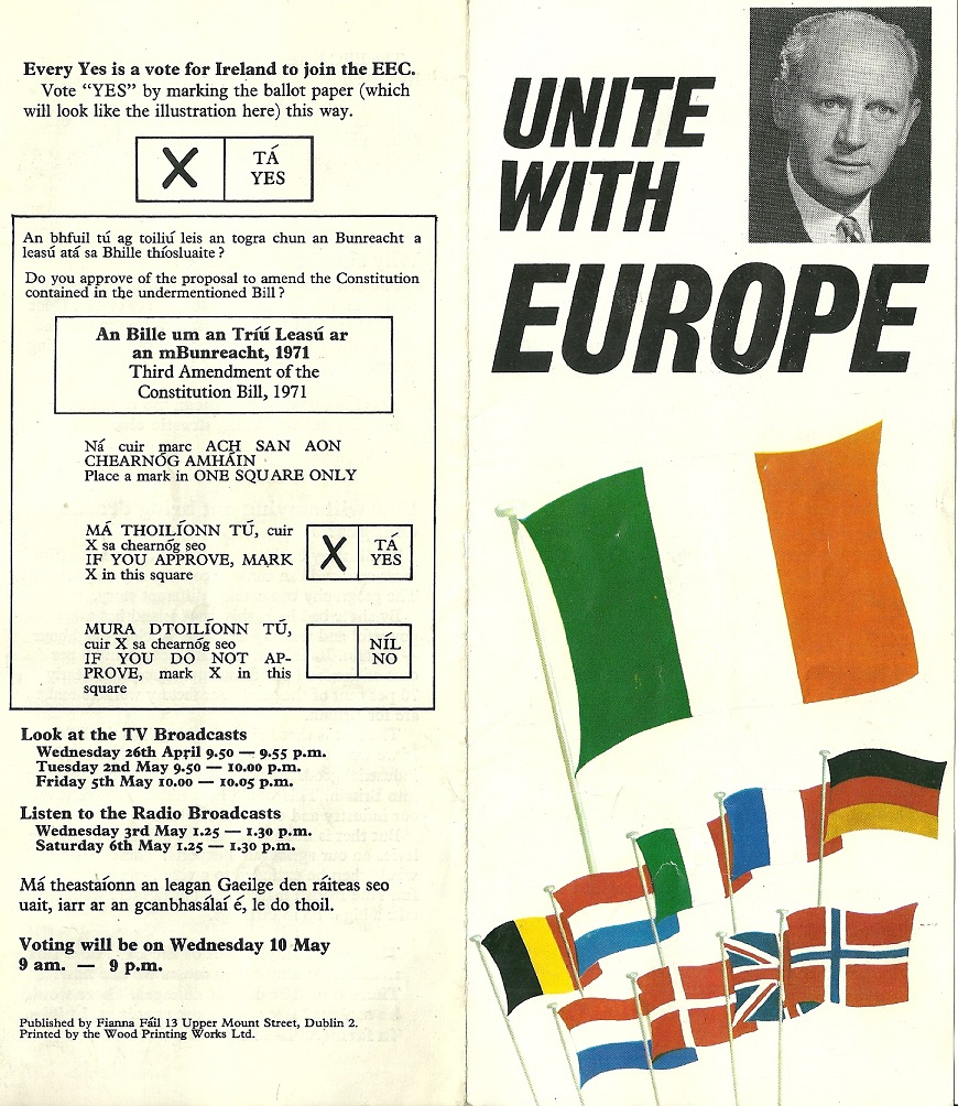 “Unite With Europe” Yes leaflet from Fianna Fáil in the 1972 Referendum on Ireland joining the EEC » FFYes72