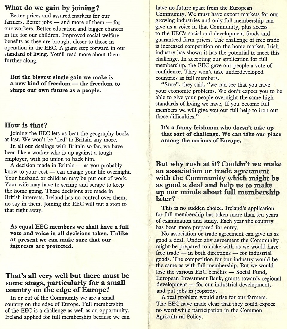 “Unite With Europe” Yes leaflet from Fianna Fáil in the 1972 Referendum on Ireland joining the EEC » FFYes72c