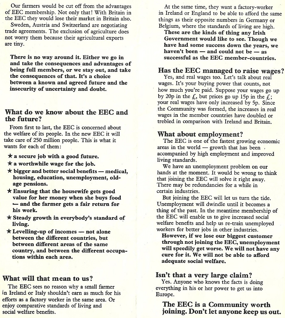 “Unite With Europe” Yes leaflet from Fianna Fáil in the 1972 Referendum on Ireland joining the EEC » FFYes72d