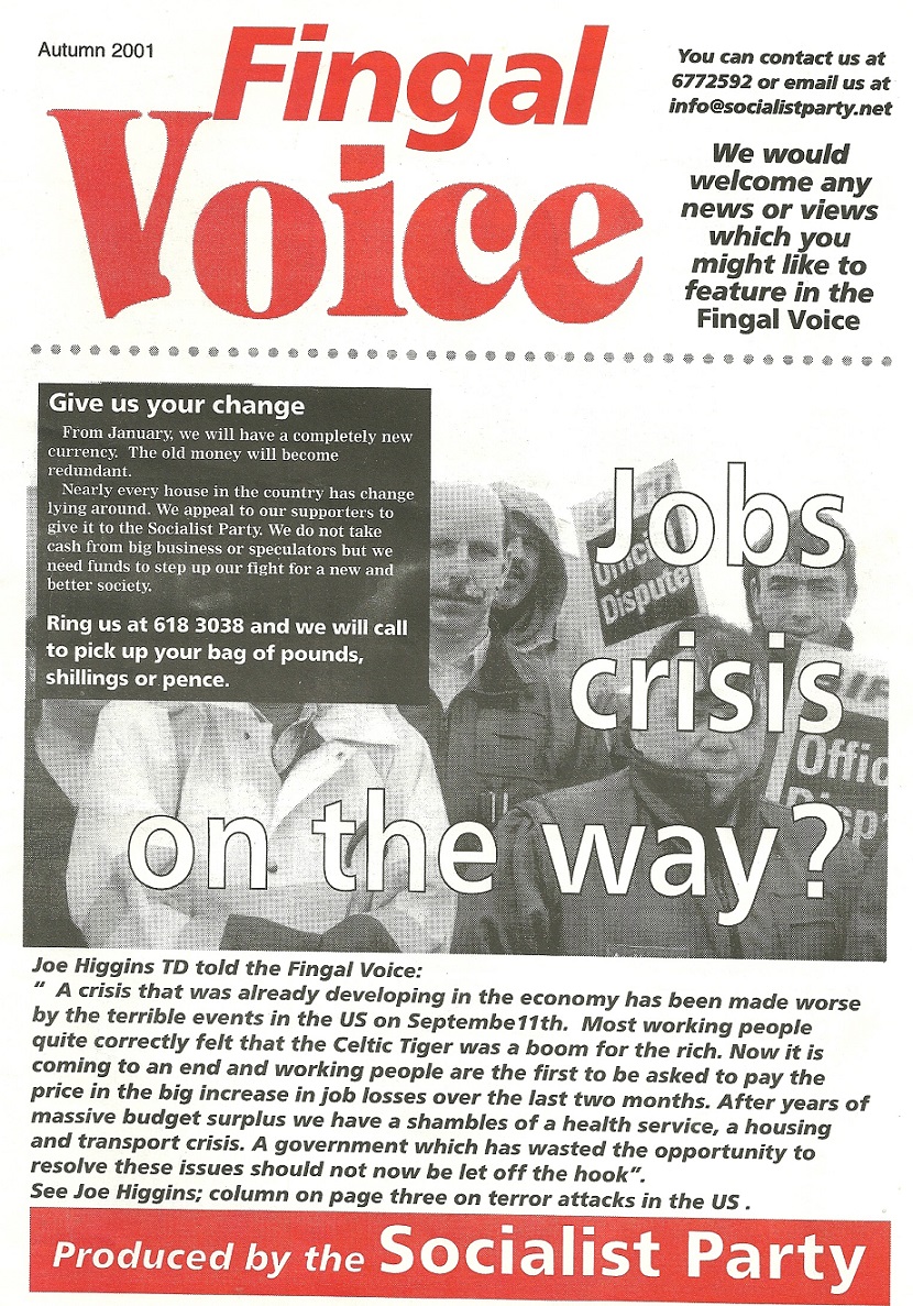 Autumn 2001 Edition of “Fingal Voice” from The Socialist Party » FingalVoiceAutumn2001cover