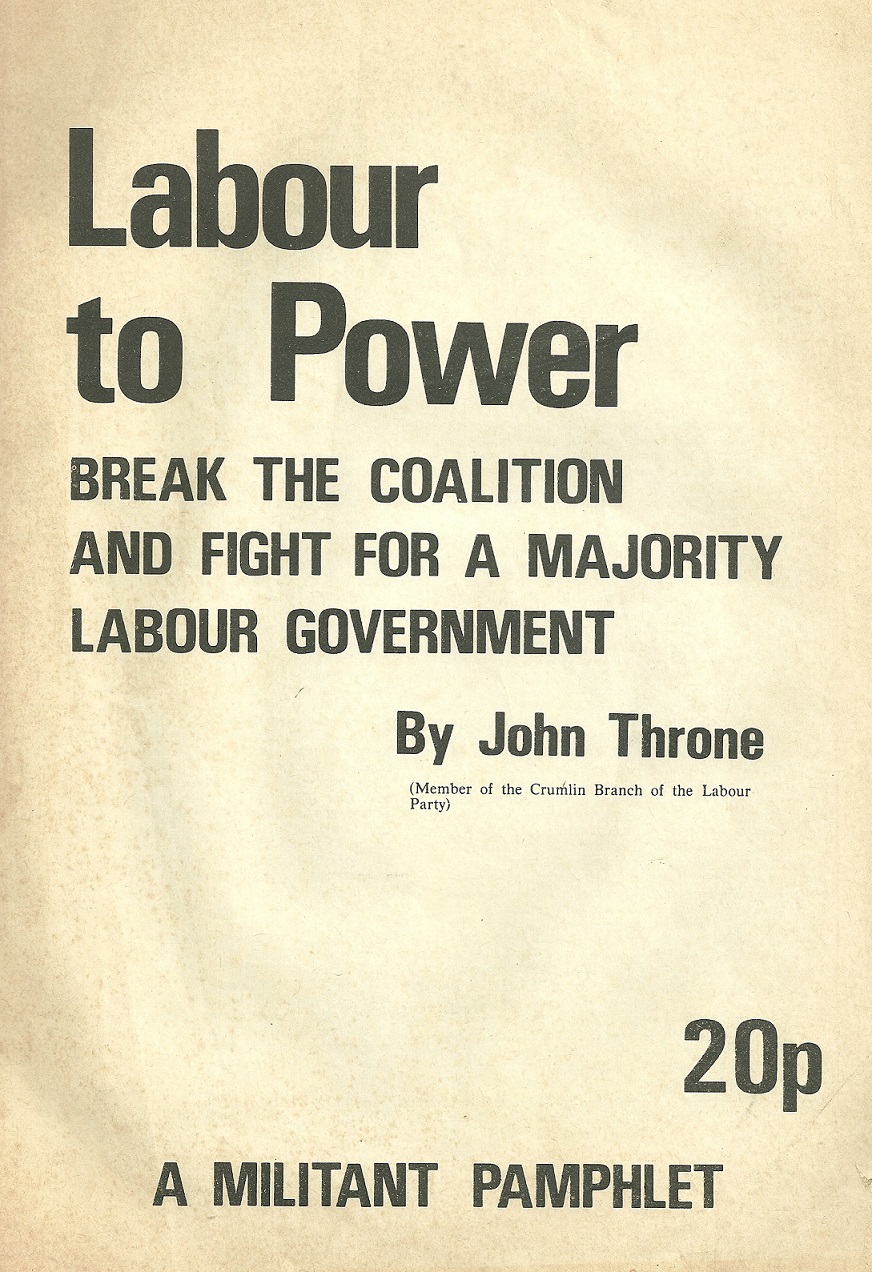 “Labour To Power- Break The Coalition And Fight For A Majority Labour Government” A Militant Pamphlet by John Throne -November 1975 » LabourToPowerCover