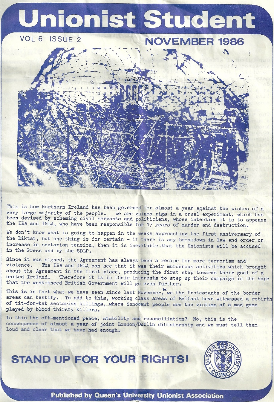 Unionist Student -November 1986 -Queens University Unionist Association » UnionistStudentCover
