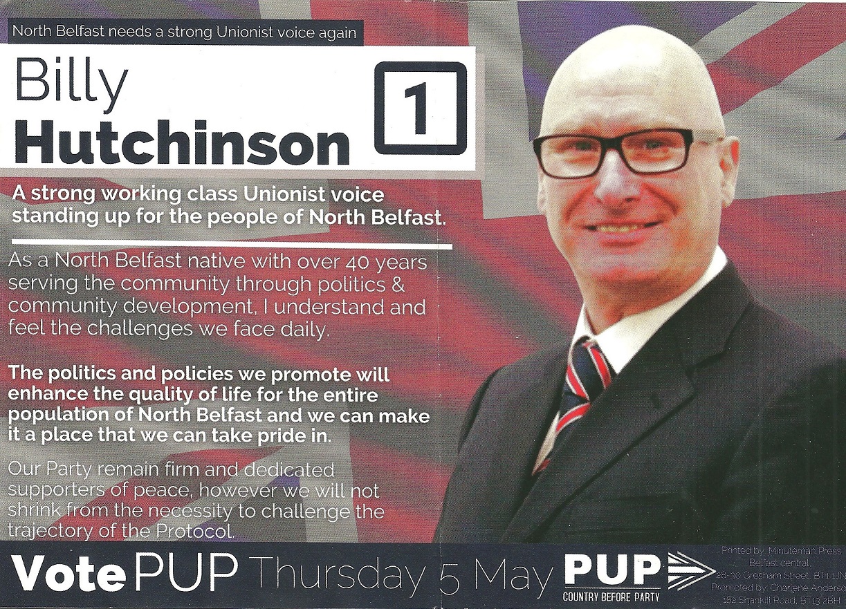 Leaflet from Billy Hutchinson – PUP – North Belfast – 2022 Assembly Elections » billyhutchinson1