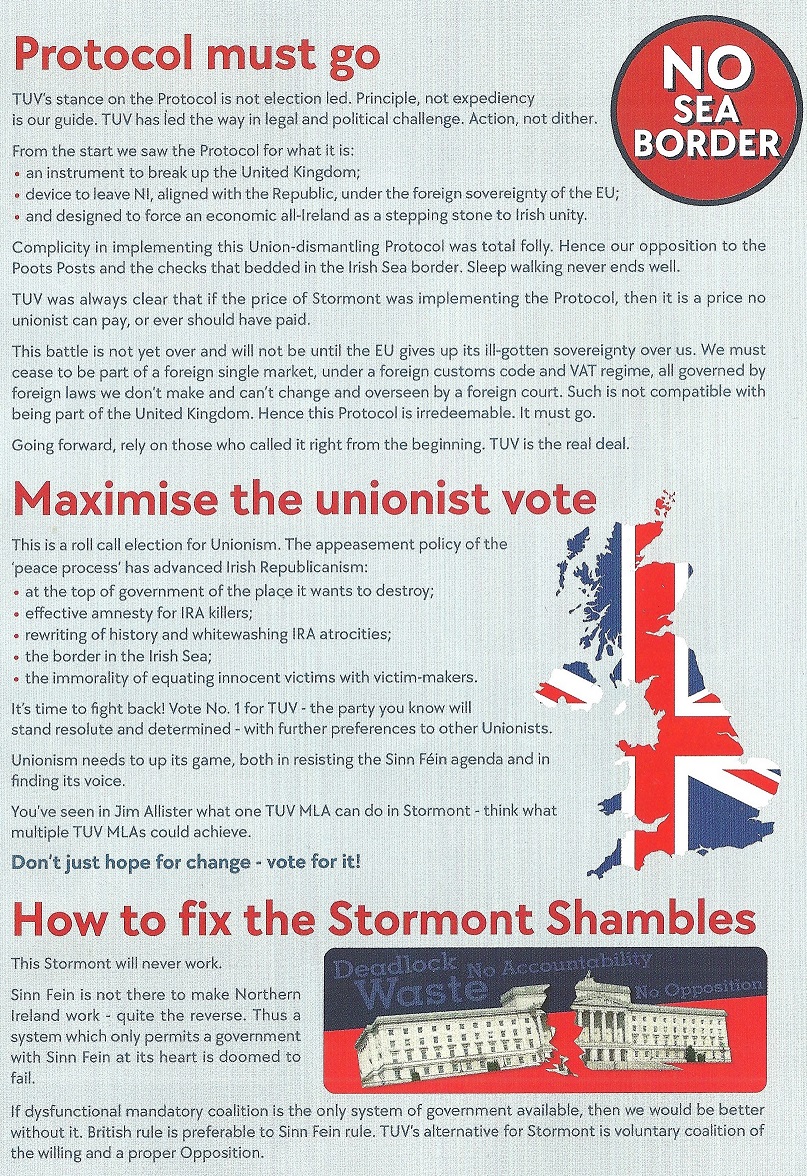 Leaflet from Ron McDowell -TUV – North Belfast – 2022 Assembly Elections. » ronmcdowell2