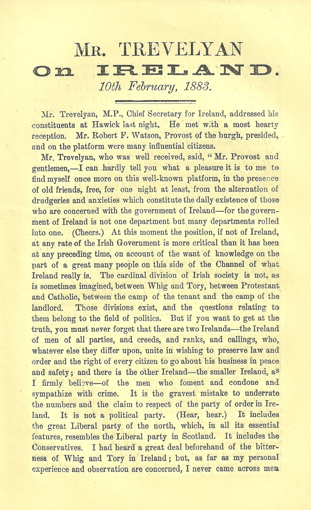 “Mr. Trevelyan On Ireland” -Pamphlet from the Irish Loyal and Patriotic Union – 1883 » trevelyanonirelandcover