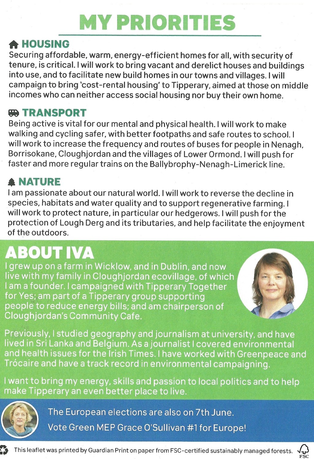 Leaflet from Iva Pocock – Green Party -Nenagh – 2024 Local Elections » ivapocock2