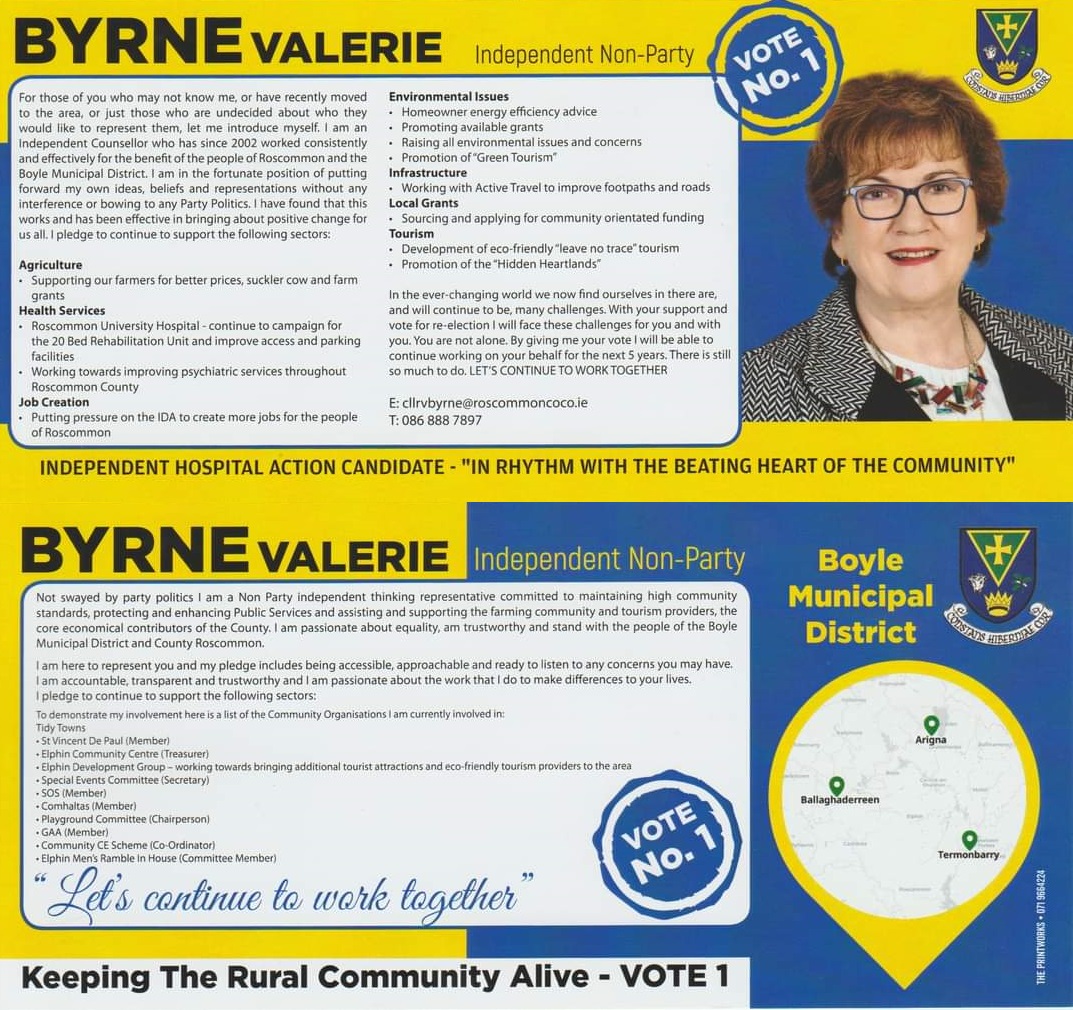 Leaflet from Valerie Byrne – Independent Hospital Action Candidate – Boyle – 2024 Local Elections » valeriebyrnele24