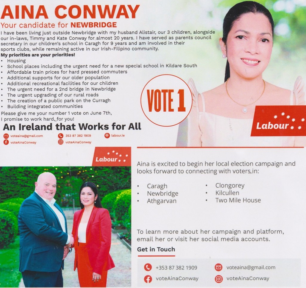 A leaflet from Aina Conway who is running for Labour in Newbridge in the 2024 Local Elections