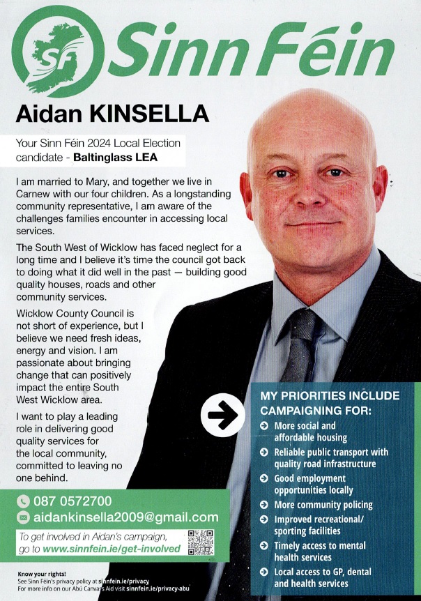 Leaflet from Aidan Kinsella – Sinn Féin – Baltinglass – 2024 Local Elections » aidankinsellale24a