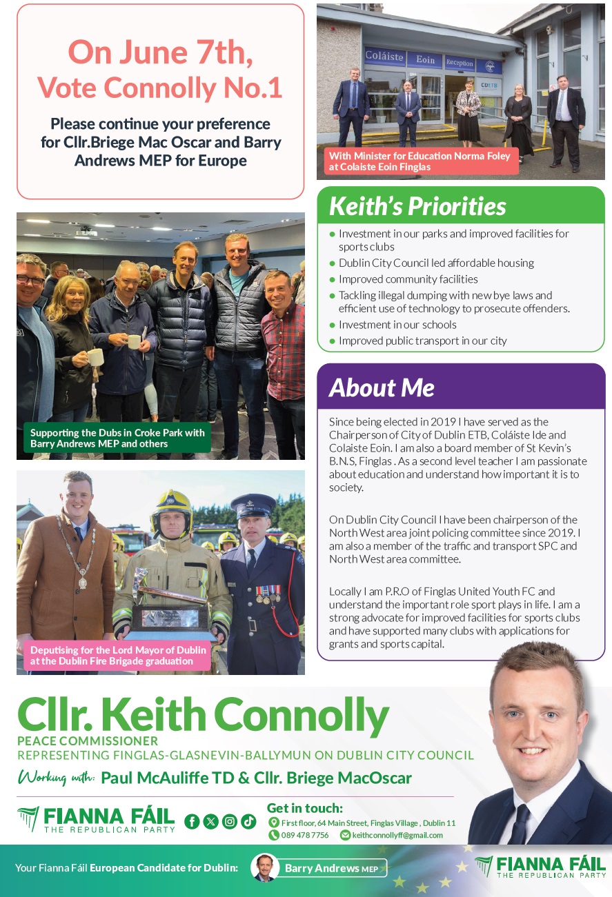 A leaflet from Keith Connolly who is running for Fianna Fáil in Ballymun Finglas in the 2024 Local Elections.