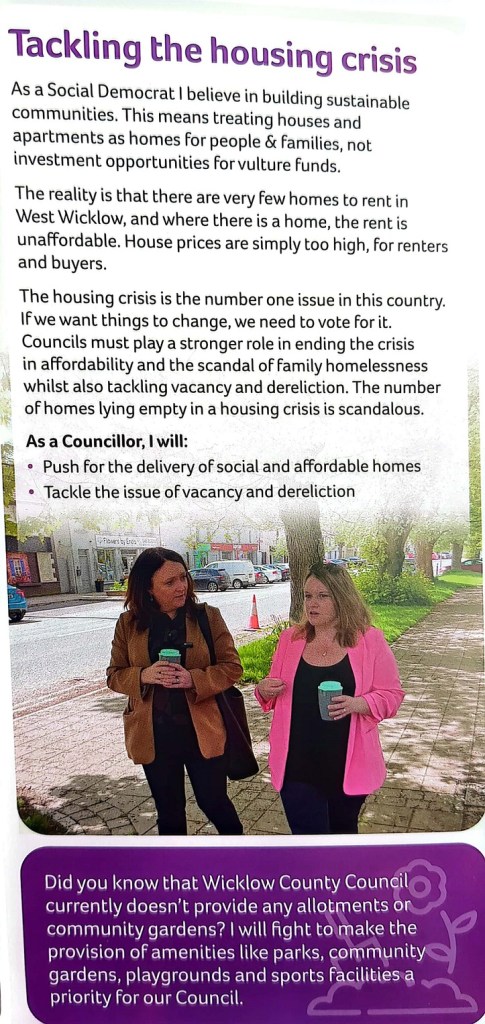 A leaflet from Deirdre McCormack who is running for The Social Democrats in Baltinglass in the 2024 Local Elections