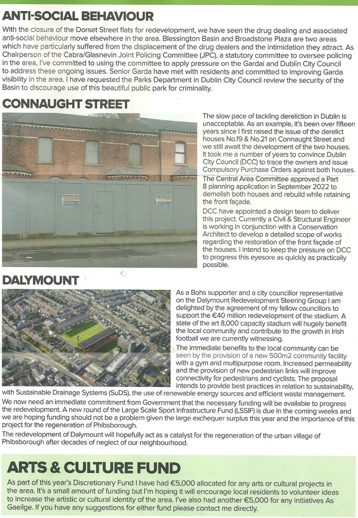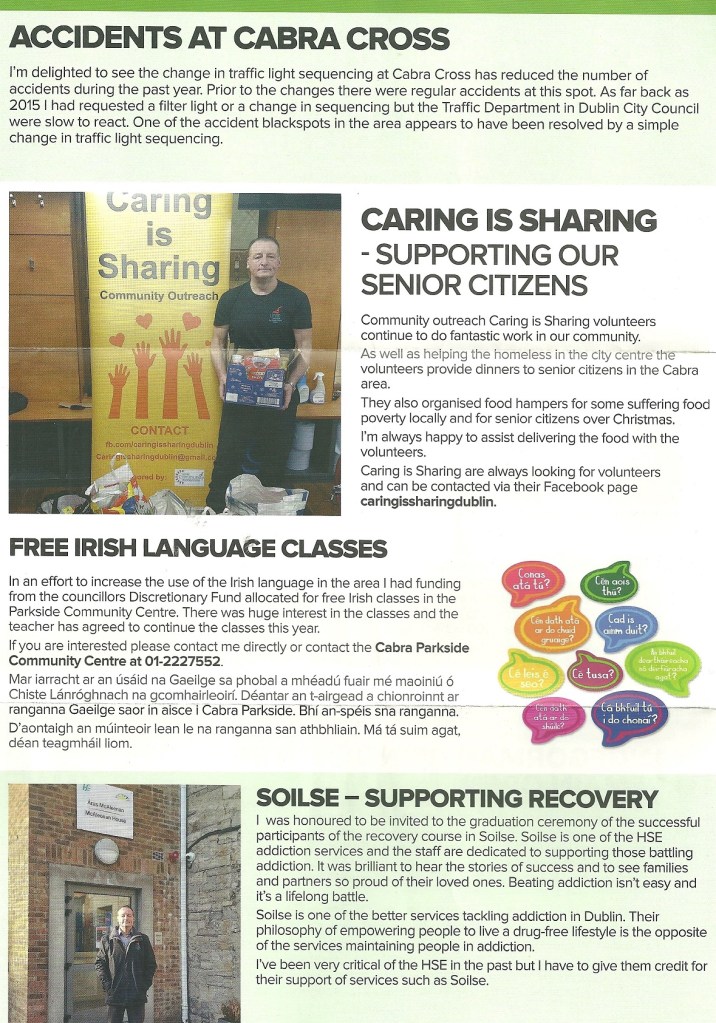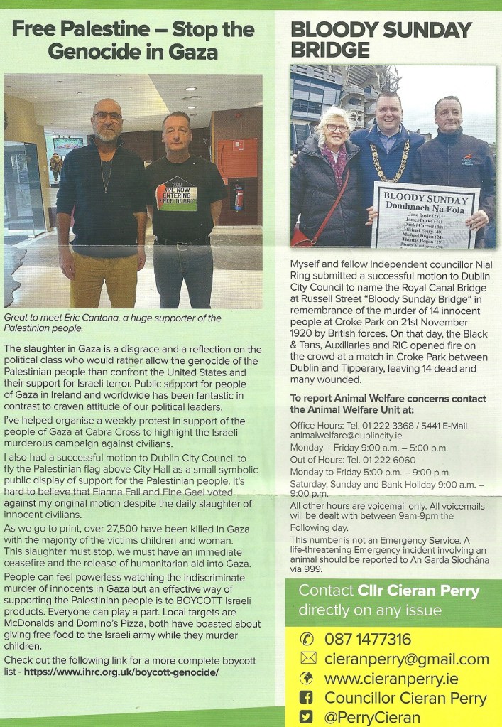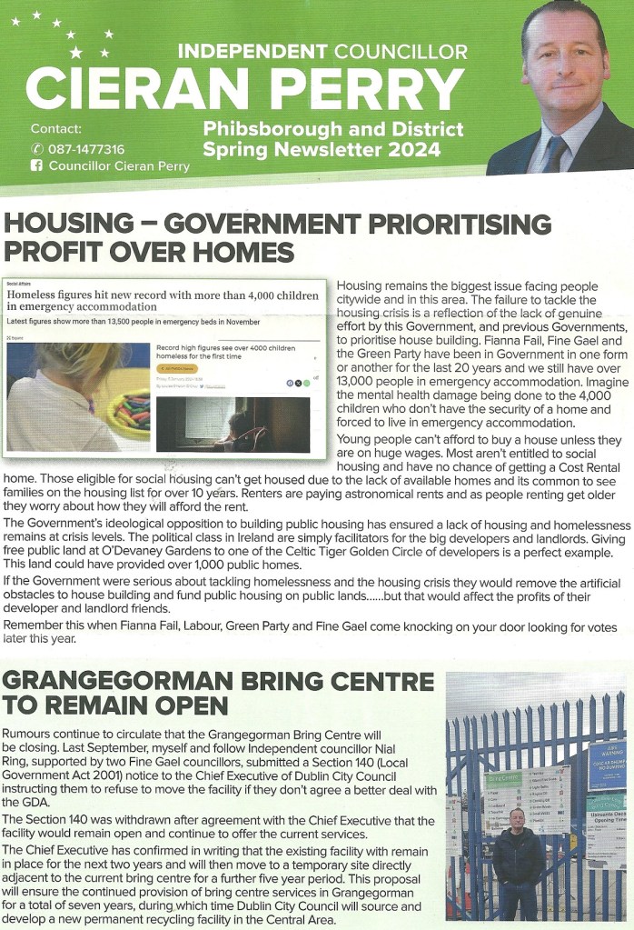 A leaflet from Cieran Perry who is running as an Independent in Cabra Glasnevin in the 2024 Local Elections