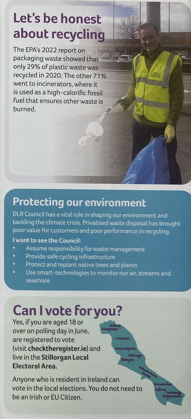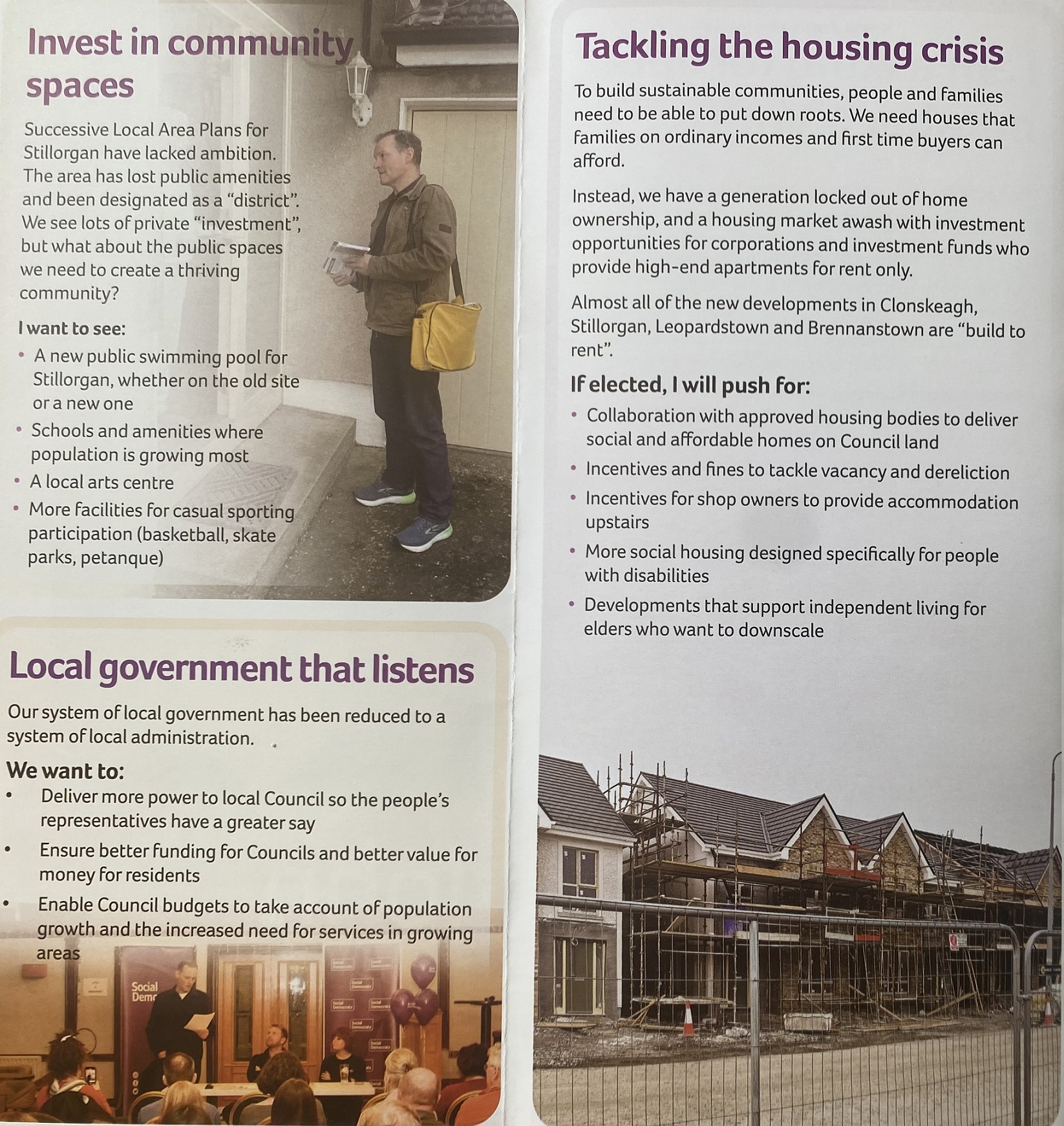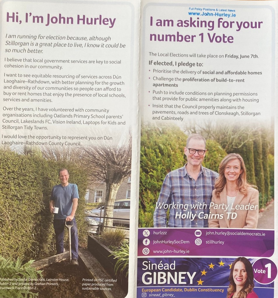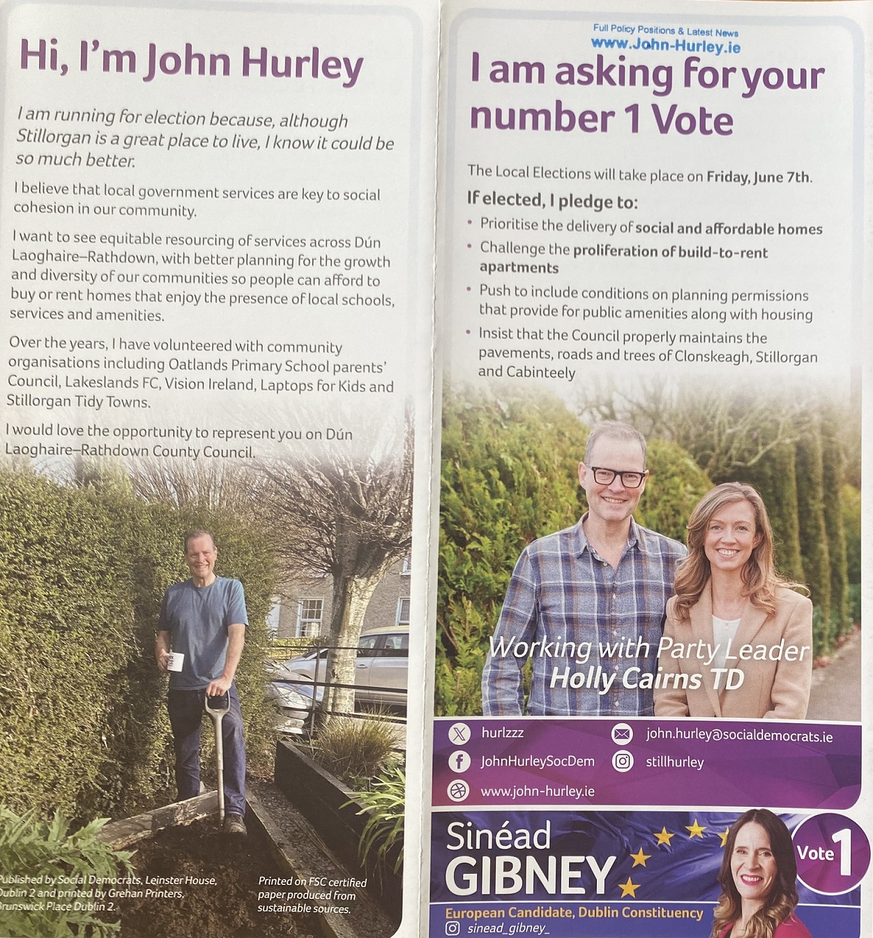 A leaflet from John Hurley who is running for The Social Democrats in Stillorgan in the 2024 Local Elections