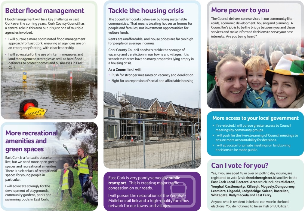 A leaflet form Liam Quaide who is running for The Social Democrats in Midleton in the 2024 Local Elections