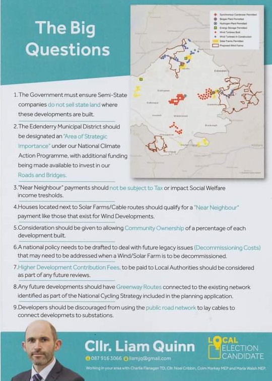 A Leaflet from Liam Quinn who is running for Fine Gael in Edenderry in the 2024 Local Elections