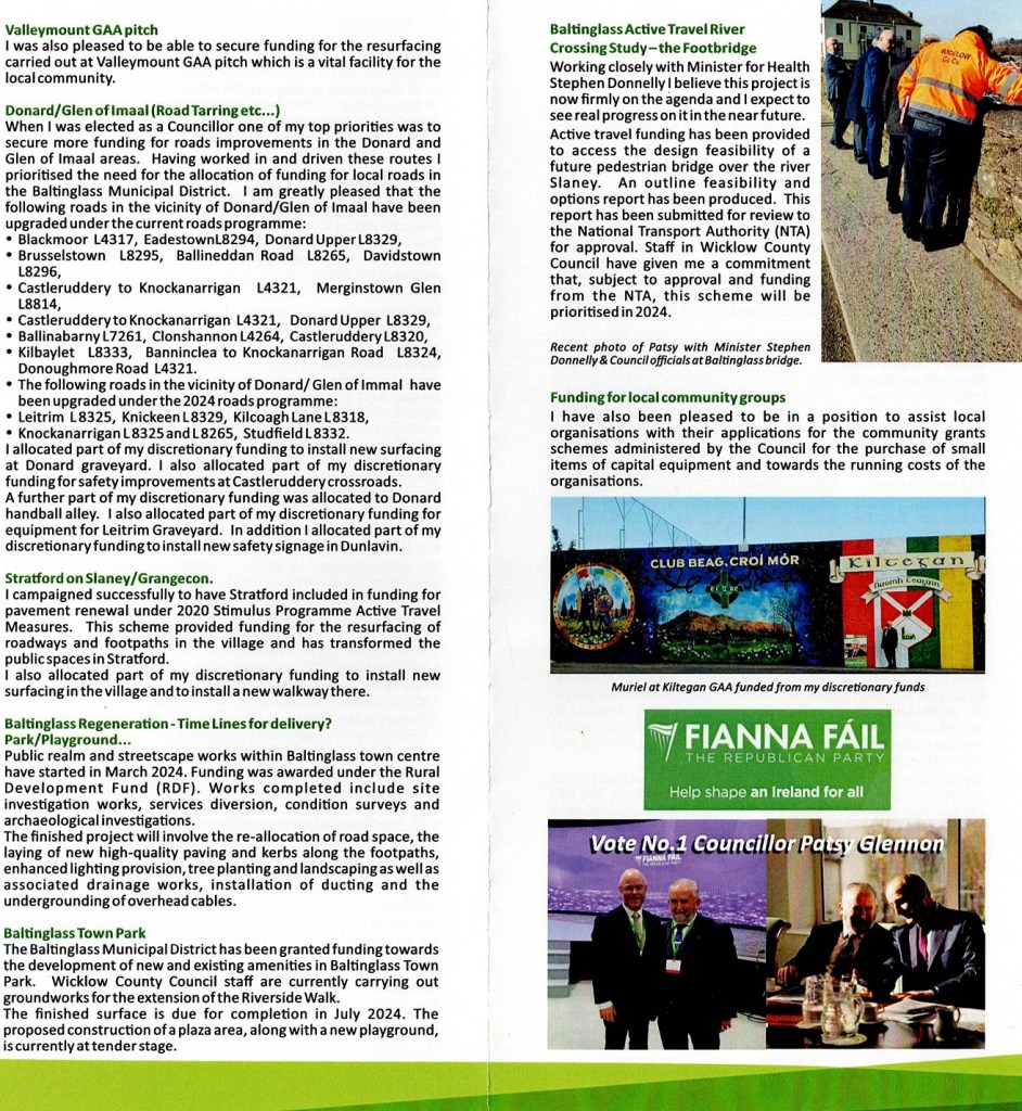 A leaflet from Patsy Glennon who is running for Fianna Fáil in Baltinglass in the 2024 Local Elections