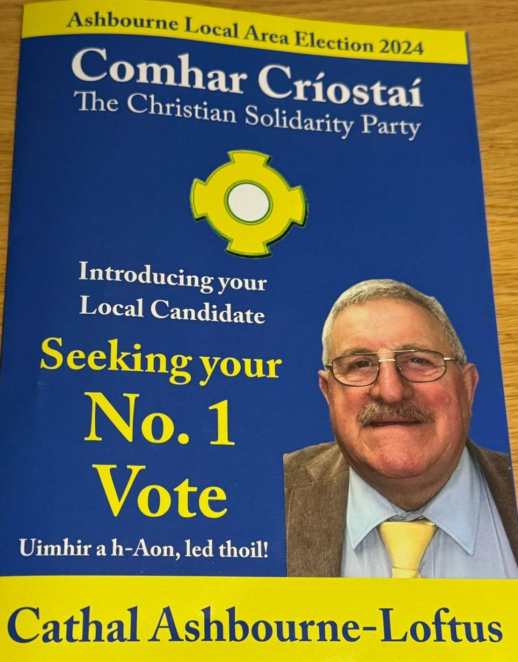 Leaflet from Cathal Ashbourne Loftus – Christian Solidarity Party – Ashbourne -2024 Local Elections » cathalahsbourneloftusle24a