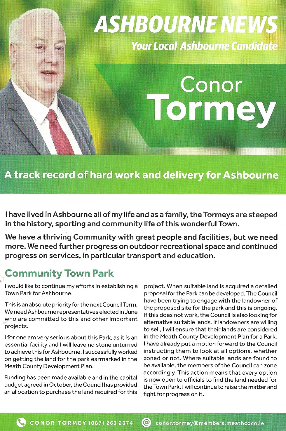 Leaflet from Conor Tormey – Fianna Fáil – Ashbourne – 2024 Local Elections » conortormeyle24a