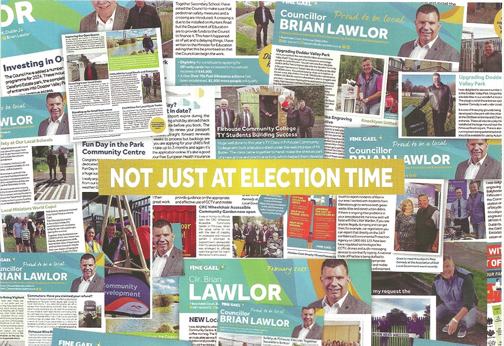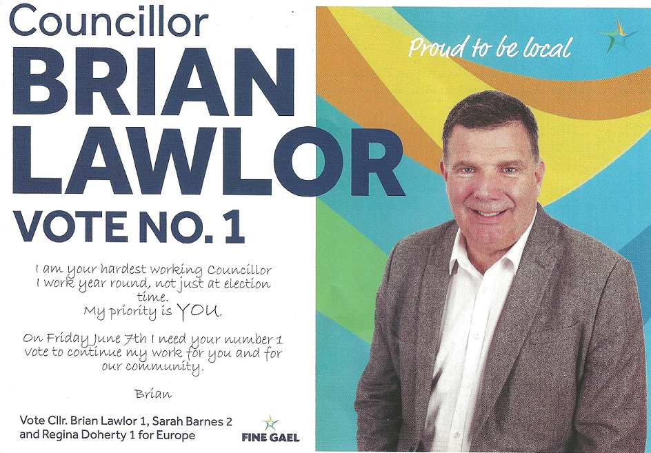 A leaflet from Brian Lawlor who is running for Fine Gael in Firhouse Bohernabreena in the 2024 Local Elections