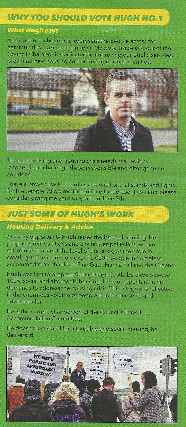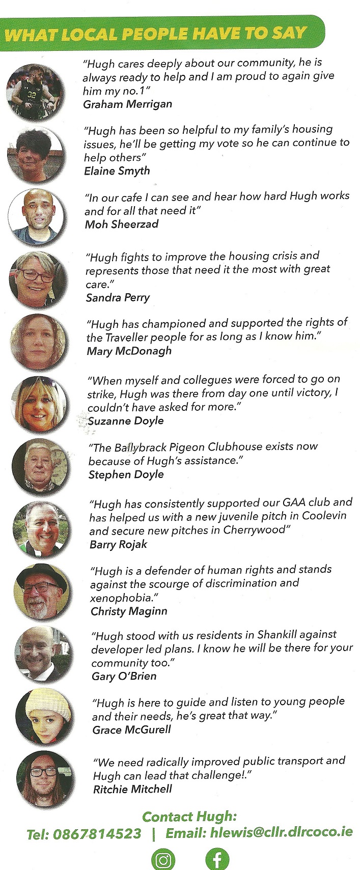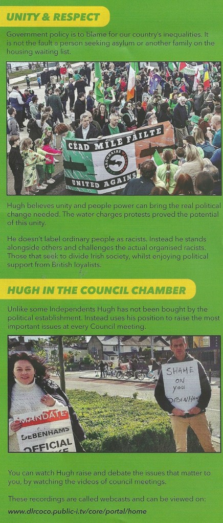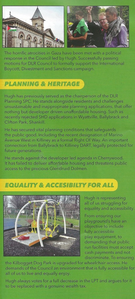 A leaflet from Hugh Lewis who is running as an Independent in Killiney Shankill in the 2024 Local Elections