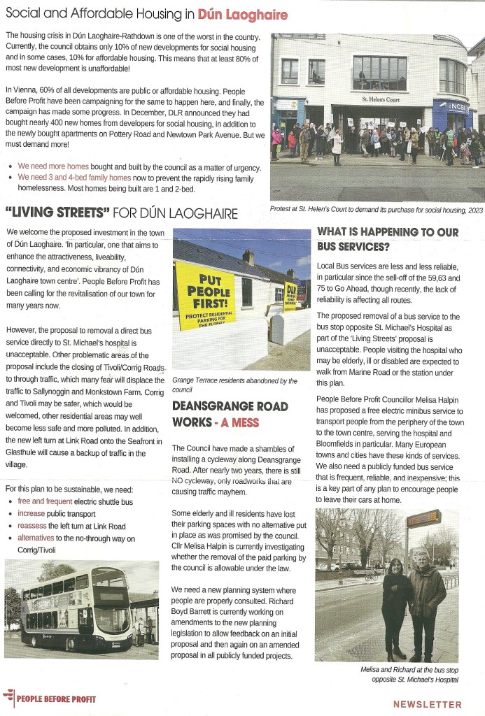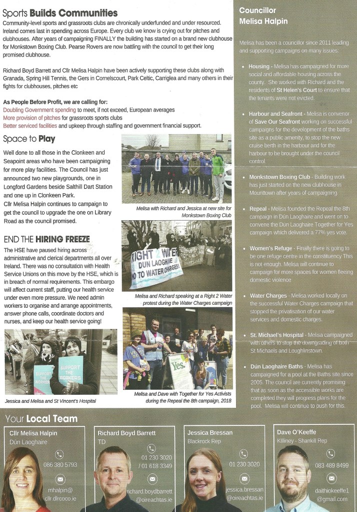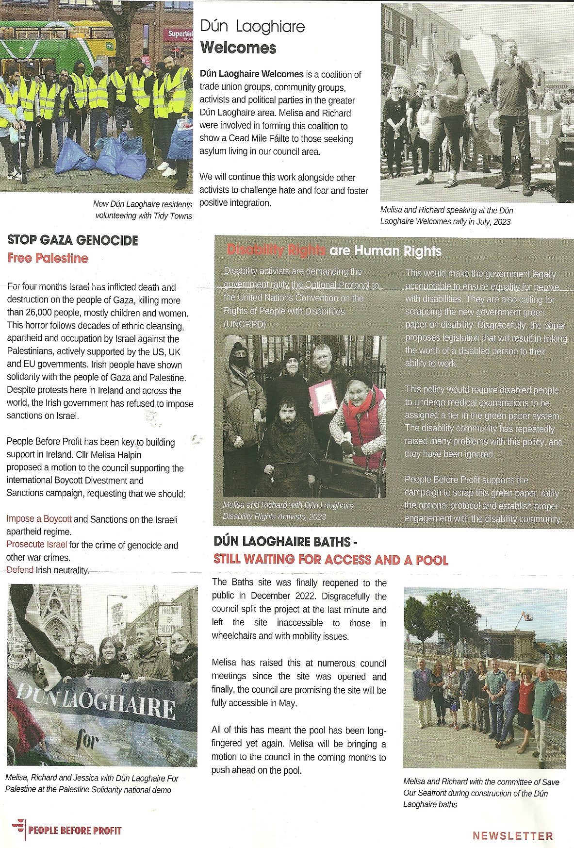 A leaflet from Melisa Halpin who is running for People Before Profit in Dún Laoghaire in the 2024 Local Elections
