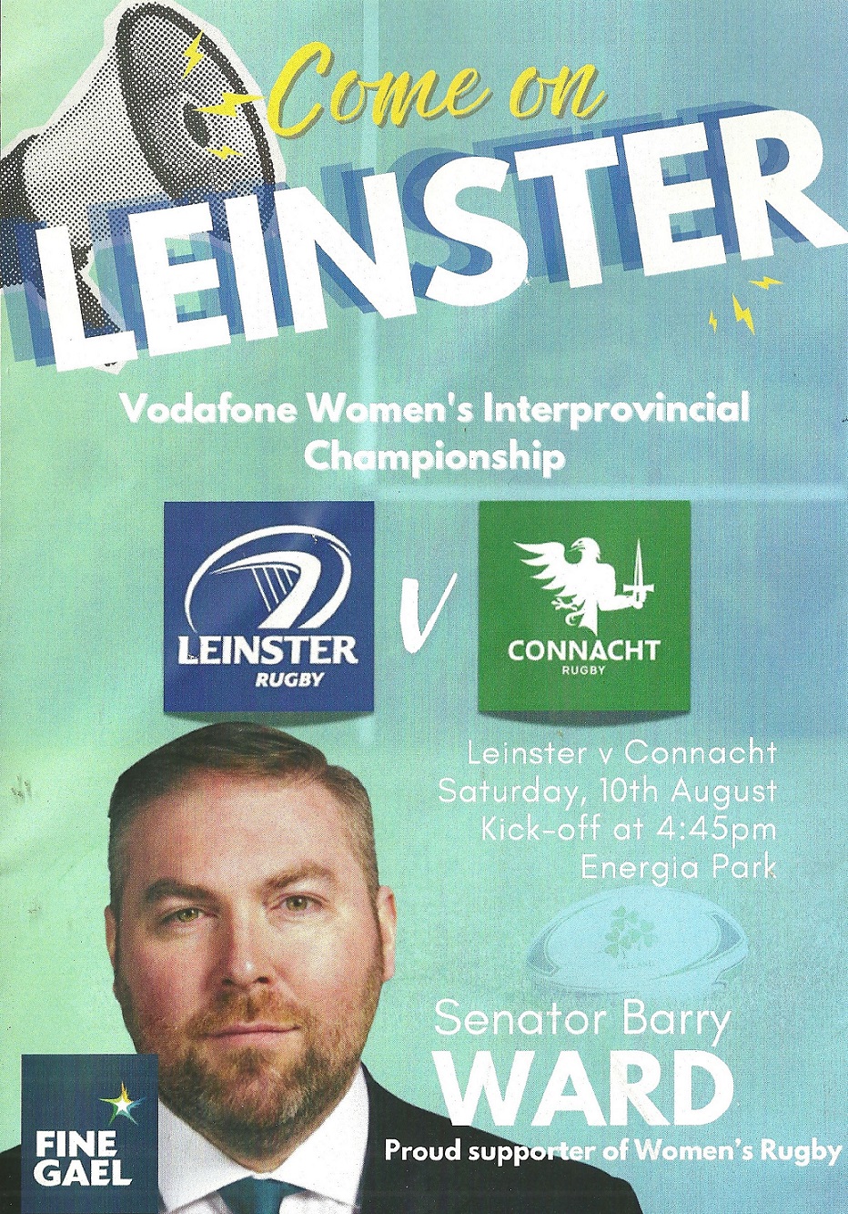 “Come on Leinster” – Women’s Rugby Leaflet from Senator Barry Ward -Fine Gael – Dún Laoghaire » BWardLeinstera