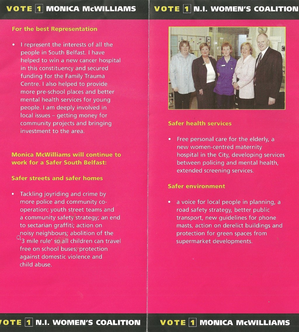 Leaflet from Monica McWilliams – N.I. Women’s Coalition – 2003 Assembly Elections » McMcWilliams2003c