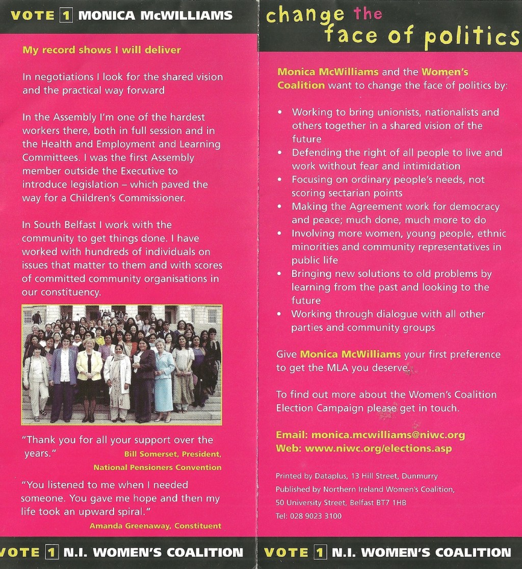 Leaflet from Monica McWilliams – N.I. Women’s Coalition – 2003 Assembly Elections » McMcWilliams2003d