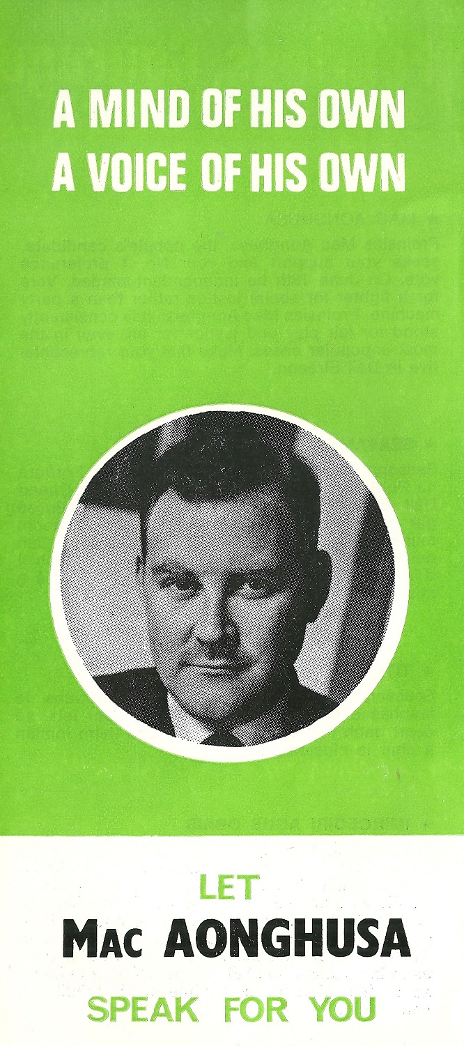Leaflet from Proinsias Mac Aonghusa – Independent – Dún Laoghaire – 1969 General Election » ProinsiasMacAonghusa1969a