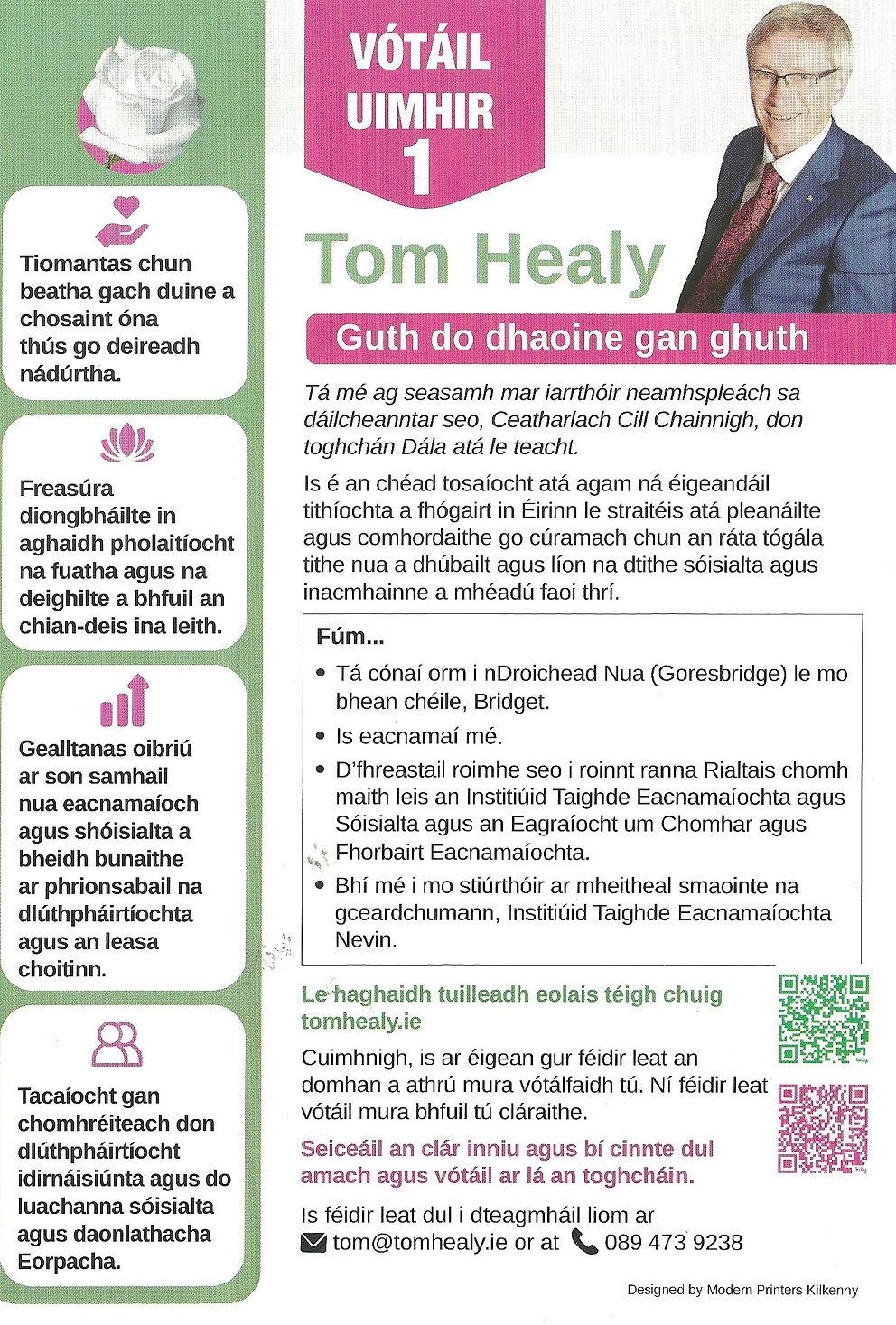 Leaflet from Tom Healy – Independent – Carlow Kilkenny – 2024 General Election » TomHealyGE24b