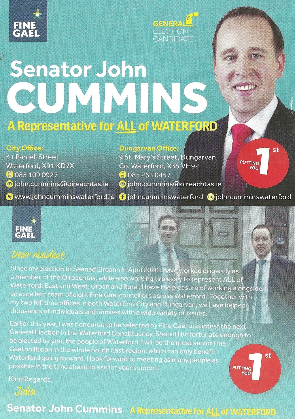Leaflet from John Cummins – Fine Gael – Waterford -2024 General Election » JohnCumminsGE2024a