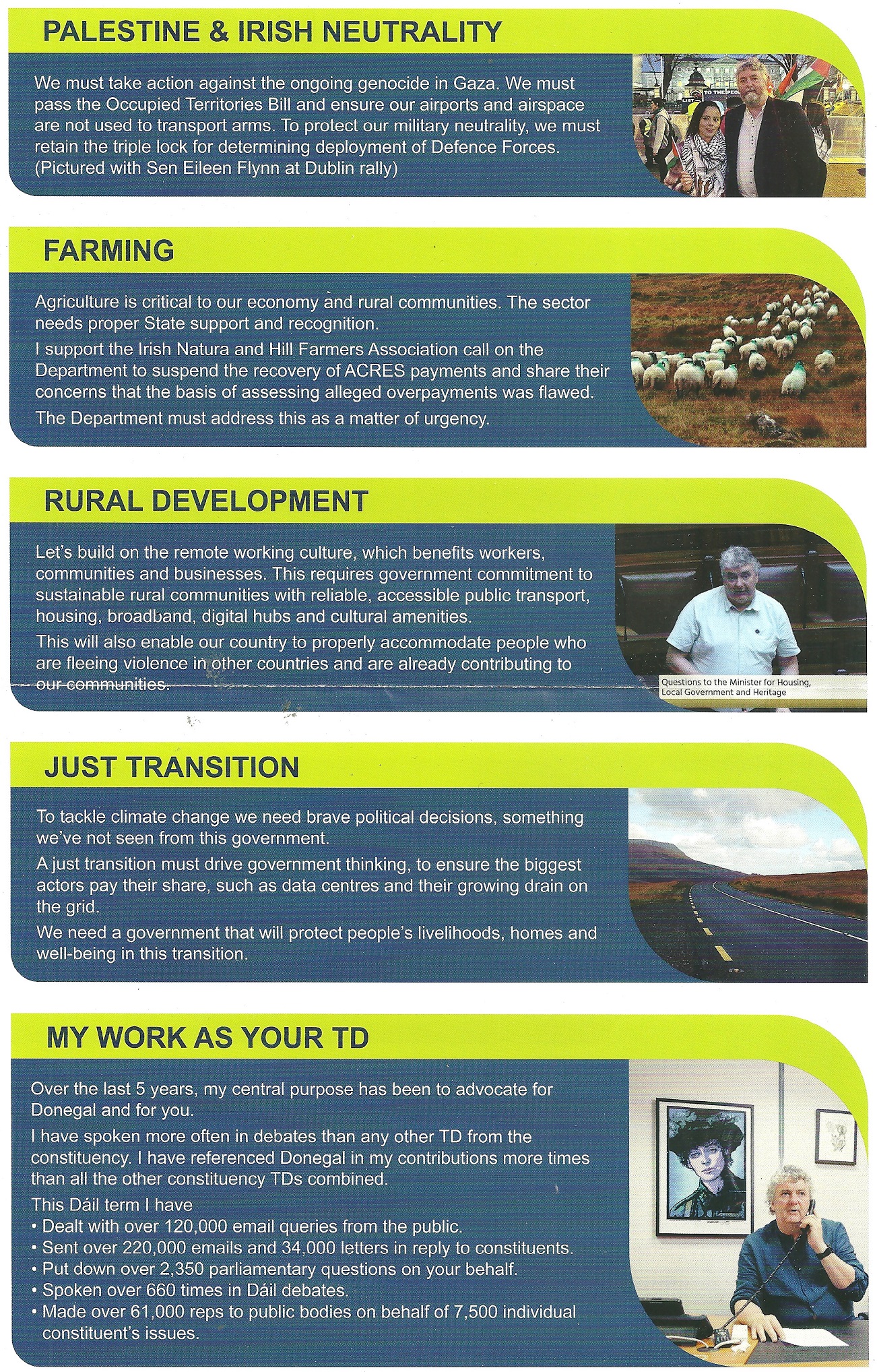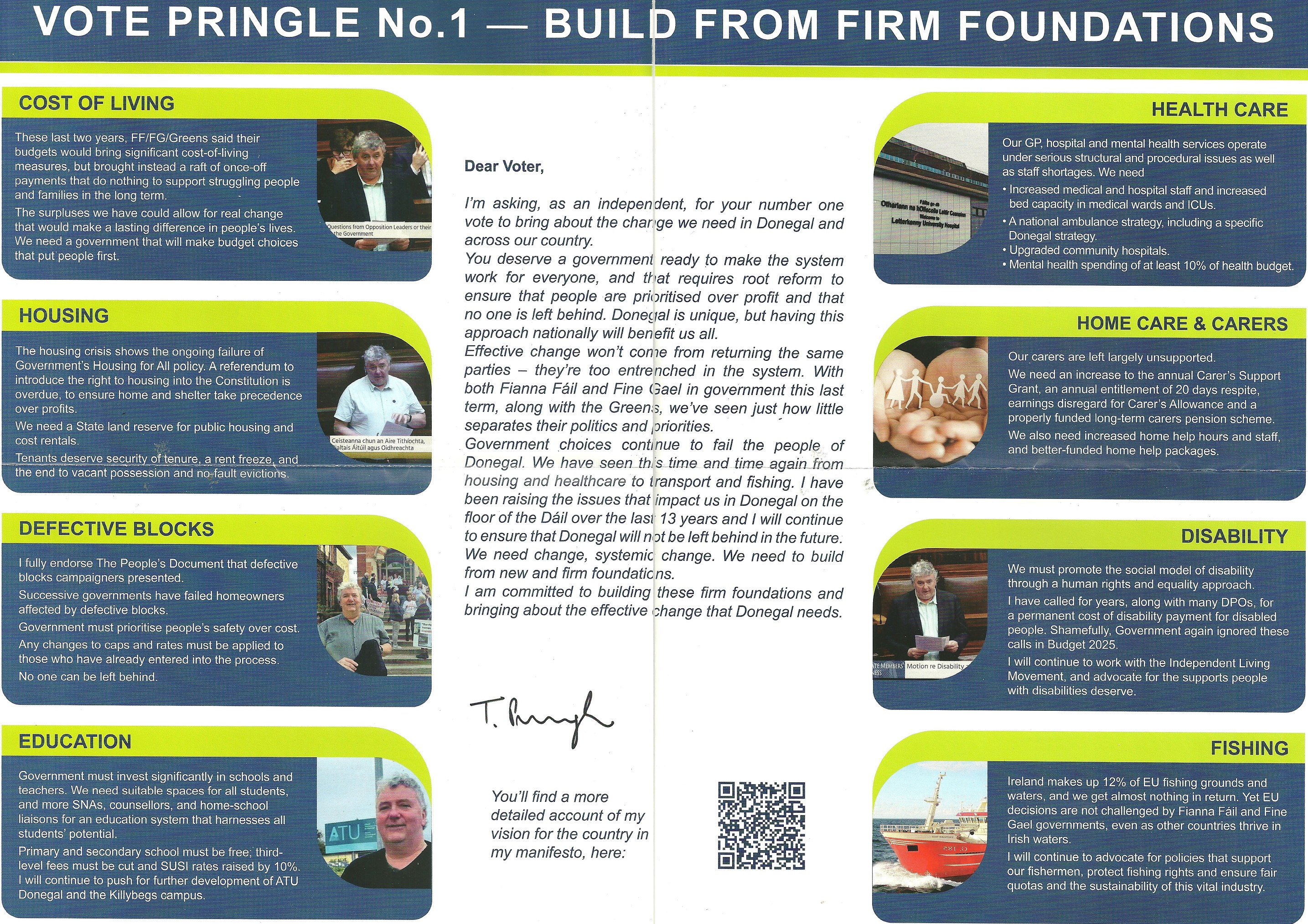 A Leaflet from Thomas Pringle who is running as an Independent in Donegal in The 2024 General Election