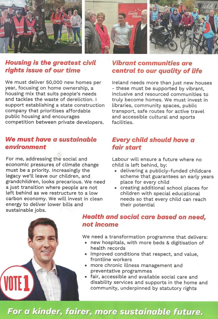 A Leaflet from Ciarán Ahern who is running for The Labour Party in Dublin South West in the 2024 General Election