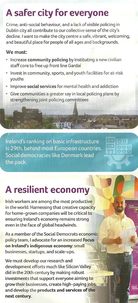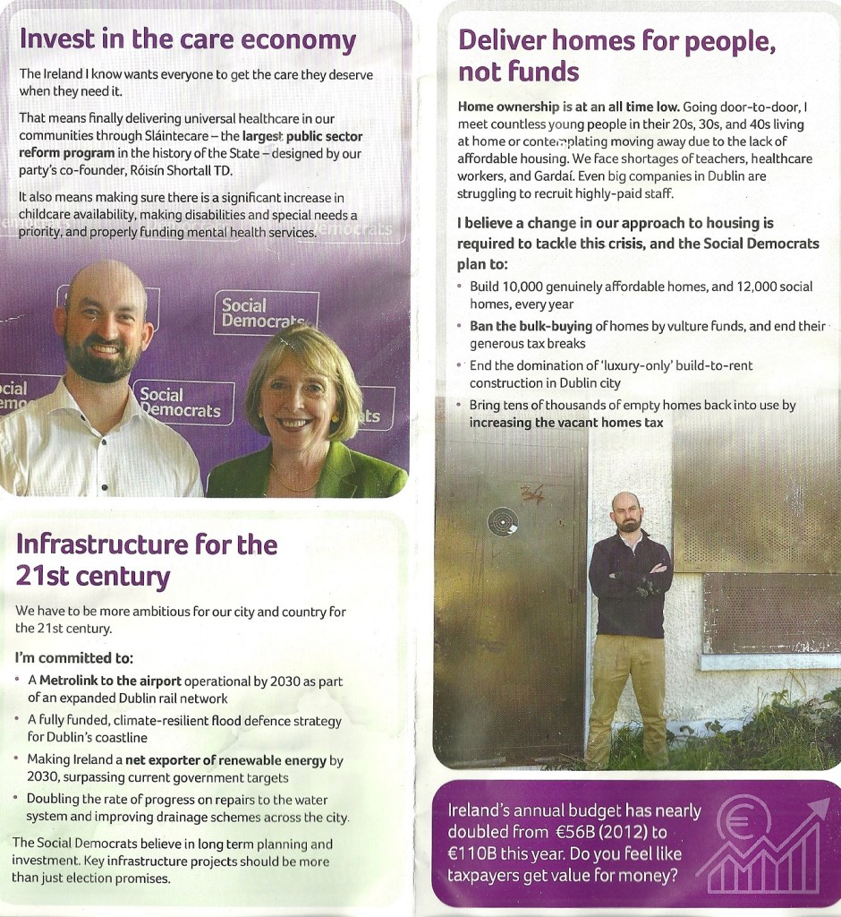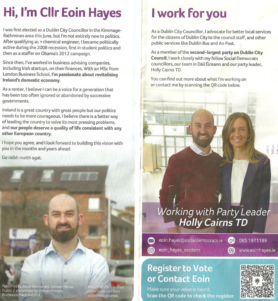 A Leaflet from Eoin Hayes who is running for The Social Democrats in Dublin Bay South in The 2024 General Election