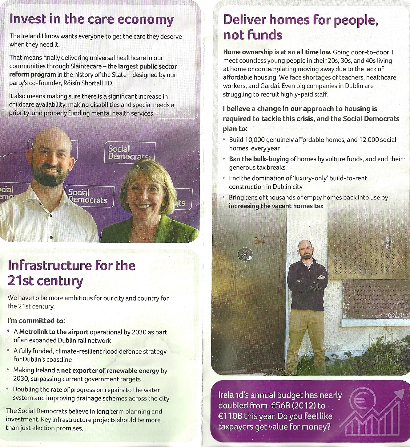 A Leaflet from Eoin Hayes who is running for The Social Democrats in Dublin Bay South in The 2024 General Election