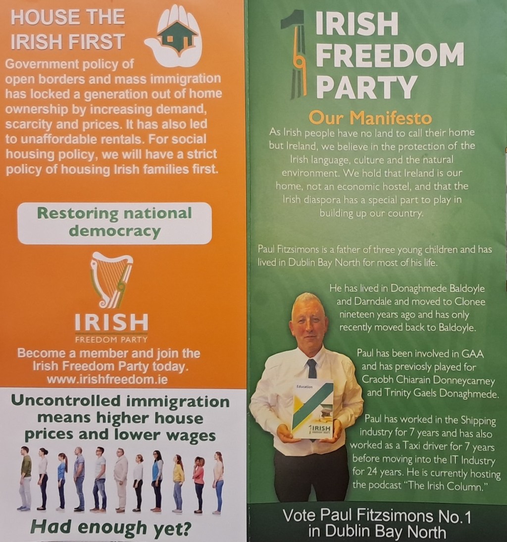 Leaflet from Paul Fitzsimons – Irish Freedom Party – Dublin Bay North – 2024 General Election » PaulFitzsimonsGE24b